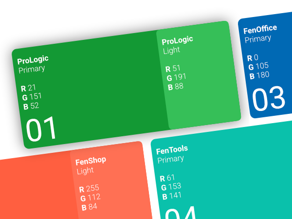 Grün blieb als Unternehmensfarbe bestehen. Zusätzlich erhielt jedes Software-Produkt eine eigene Farbwelt, die bei Messen und im Vertrieb schnelles Navigieren ermöglicht.